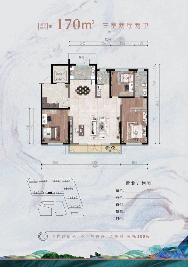 3室2廳2衛(wèi) 170m2