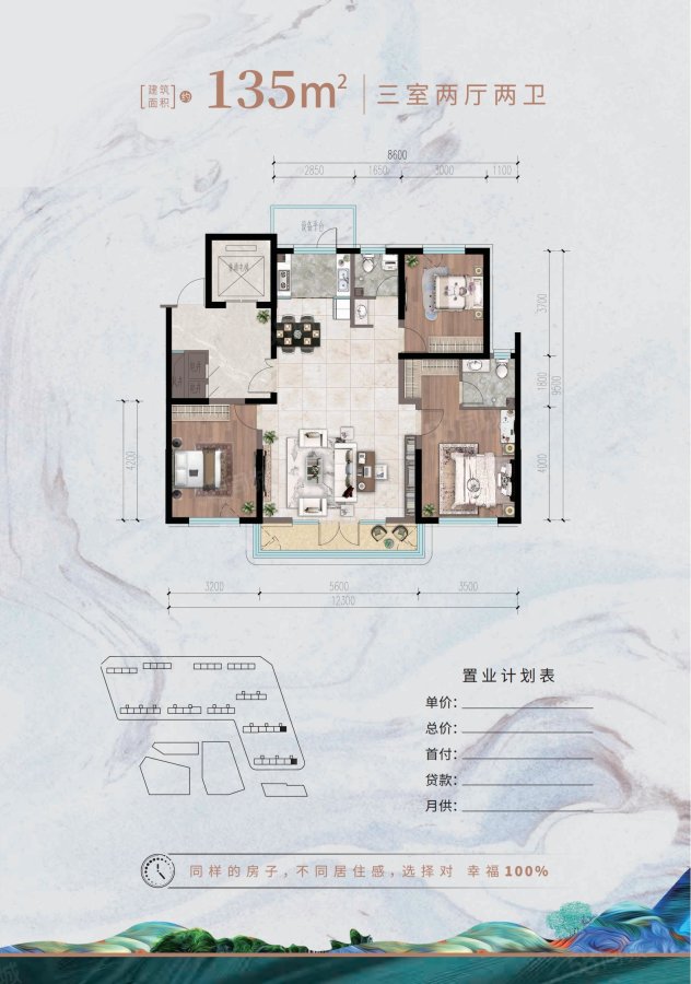 3室2廳2衛(wèi) 135m2