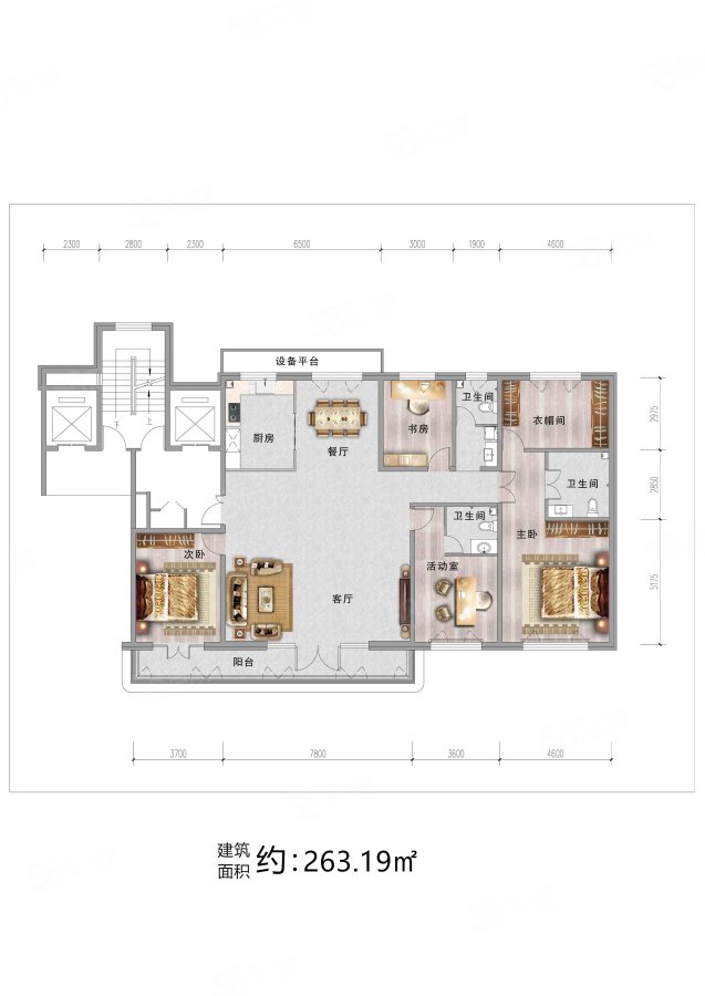 4室3廳2衛(wèi) 263m2